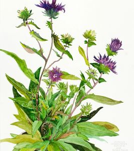 Gloria Plevin uses her power of observation and artistic skill to capture a moment in time and to celebrate life around us. She allows us to look at our surroundings in a new way, and then to reflect on what we are now encountering. Often the media that she uses for her work allow no room for error: her watercolor painting of a thistle has every part of the plant perfectly in place; intriguing shadows from porch slats are absolutely straight; watercolor vases and pitchers are perfectly symmetrical. Color, highlights, and shadows combine to create the appearance of silver metal that leaves one in awe of the sheer beauty of this object. Simple color and shape relationships evoke the weave of a basket that is transmitted by the